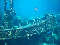 The wrecks are now covered with corals and sponges and you can find lots of fish hiding out in the wrecks. Expect to see trunkfish, spotted drum, turtles, angelfish, lobster and silversides.